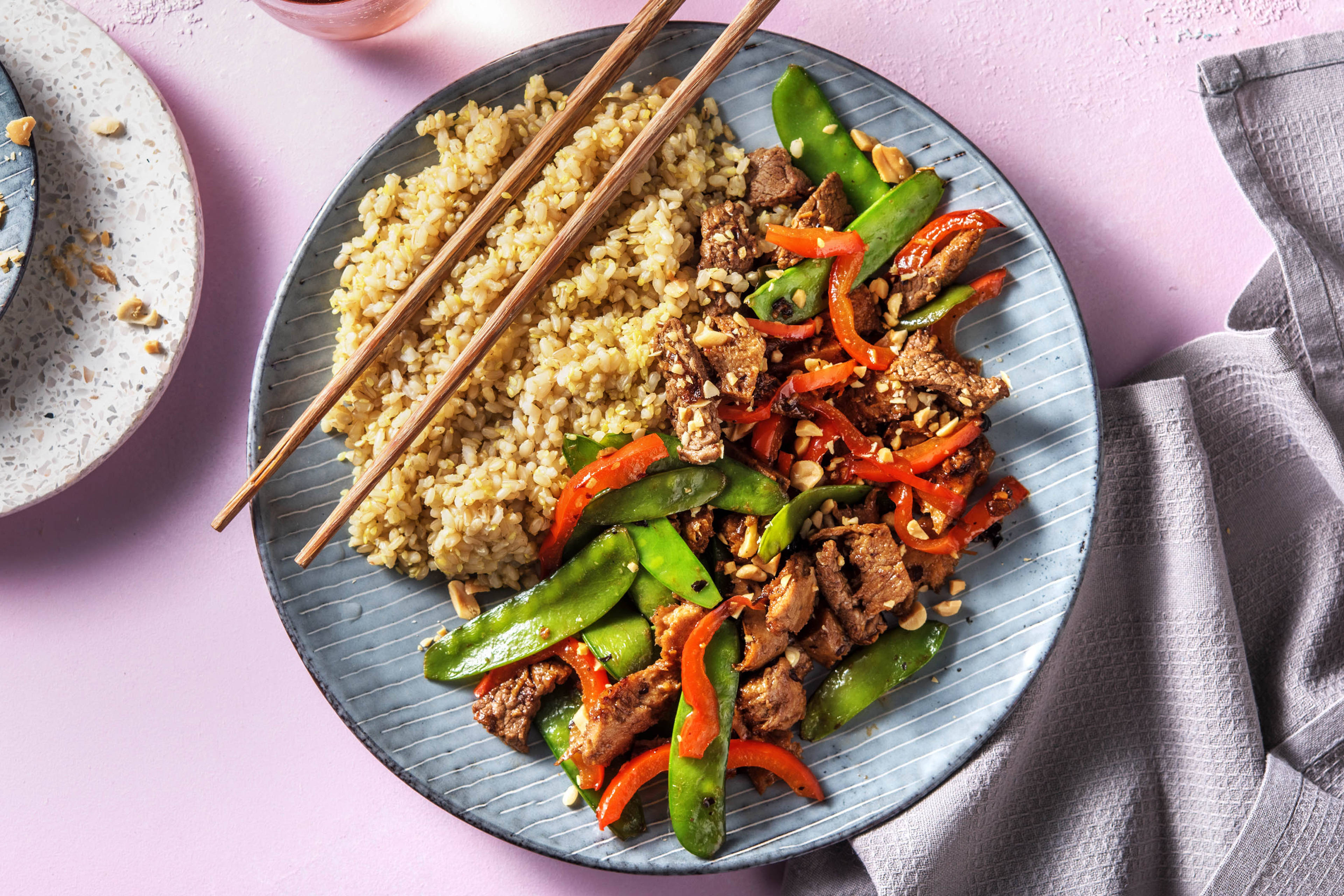 Étalez le lard sur la plaque de cuisson recouverte de papier sulfurisé et enfournez-le 8 à 10 minutes, ou jusqu'à ce qu'il soit croustillant. Faites chauffer 1/2 cs de beurre par personne dans la poêle à feu moyen-vif et cuire le burger 2 à 3 minutes de chaque côté. Déglacez au dernier moment avec la sauce teriyaki. Pendant ce temps, faites chauffer 1/2 cs de beurre dans la sauteuse à feu moyen-vif et cuire les pois mange-tout 2 minutes avec une bonne pincée de sel. Réduisez le feu à doux, couvrez la sauteuse et laissez mijoter 5 à 7 minutes. Remuez de temps en temps.