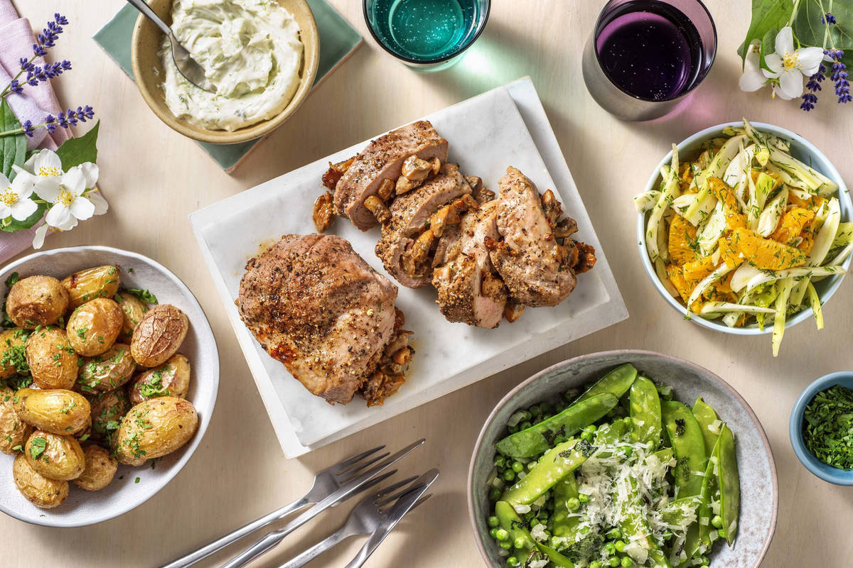 Ciselez les fanes de fenouil et mélangez-les à la mayonnaise dans un petit bol (voir CONSEIL). Mélangez le persil plat aux grenailles. Servez la salade et les pommes de terre dans de jolis bols et déposez le filet de porc farci sur une assiette. Servez avec la mayonnaise au fenouil.