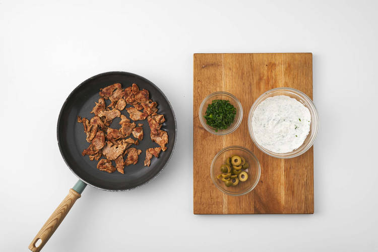 with herb yogurt and green olives