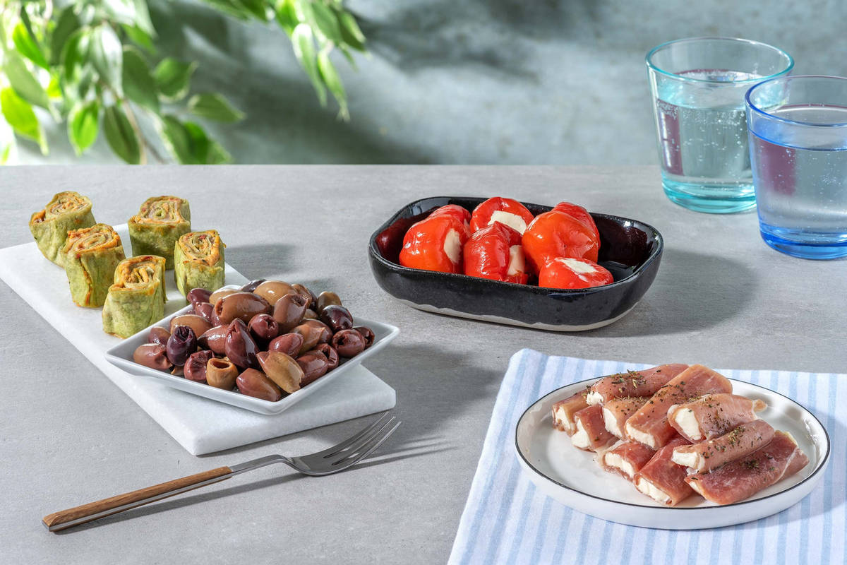 Cet assortiment contient: <p><p> <a href="https://www.hellofresh.be/recipes/wraphapje-kip-pesto-60f59a87a36e350e780a2fde?locale=nl-BE"> Mini-wrap au poulet et pesto </a><p> <a href="https://www.hellofresh.be/recipes/serranoham-roomkaas-rolletje-60f59b0ece6067093a66474e?locale=nl-BE"> Rouleau de jambon serrano et fromage frais </a><p> <a href="https://www.hellofresh.be/recipes/roomkaas-zoete-peper-60f59670c2a4442721151ada?locale=nl-BE"> Fromage frais au piment doux </a><p> <a href="https://www.hellofresh.be/recipes/leccino-olijven-60f59b8a7179857a67295b90"> Olives leccino </a><p> <p><p> <small>HelloFresh met tout en œuvre pour communiquer les informations les plus exactes possibles sur ses produits mais ne peut cependant garantir l'exactitude, le caractère complet et/ou actuel de ces informations. Nos recettes sont régulièrement revues et améliorées, ce qui signifie que les informations concernant les allergènes (telle que la mention ""peut contenir de""), la valeur nutritionnelle, les ingrédients ou tout autre détails sur nos produits peuvent être amenées à changer et que des différences peuvent apparaître entre les informations indiquées sur le Site Internet et/ou l'Application et celles présentes sur le produit. En cas de doute, toujours se référer aux informations présentent sur l'étiquette. Pour toute question sur nos produits, merci de contacter le service clients. Si vous avez des questions sur des produits qui ne sont pas vendus sous la marque HelloFresh vous pouvez également contacter directement le fabricant des ces produits si vous le souhaitez.</small>