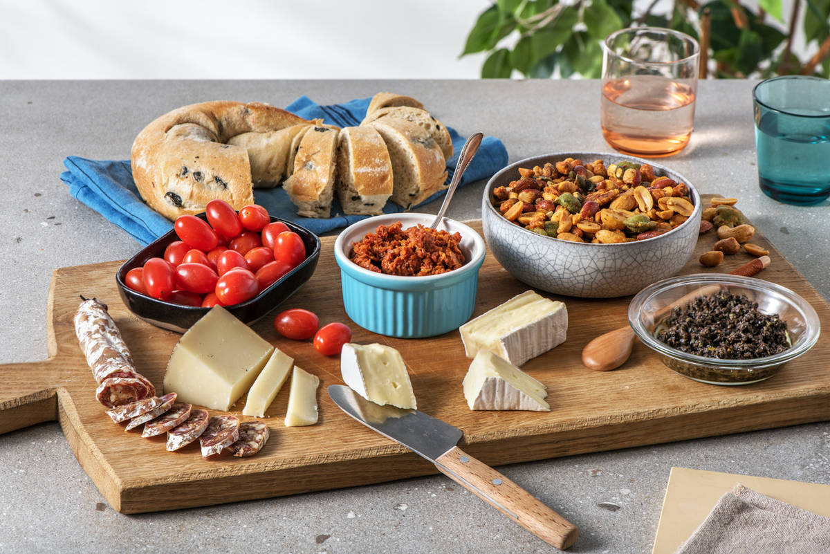 Une sélection de produits de qualité pour un apéro parfait. Des fromages, de la charcuterie et d'autres produits authentiques à découvrir. Voici ce que vous retrouverez dans la box Apéro ce mois-ci : Fromage de brebis Reserva (100 g) Brie (100 g) Saucisson Brandt & Levie (80 g) Couronne aux olives (300 g) Tapenade de tomates (120 g) Mini tomates roma (200 g Tapenade d'olives noires (160 g) Mélange de noix Apéro mix (200 g)