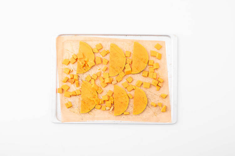 - Garneer met de pompoenparten.