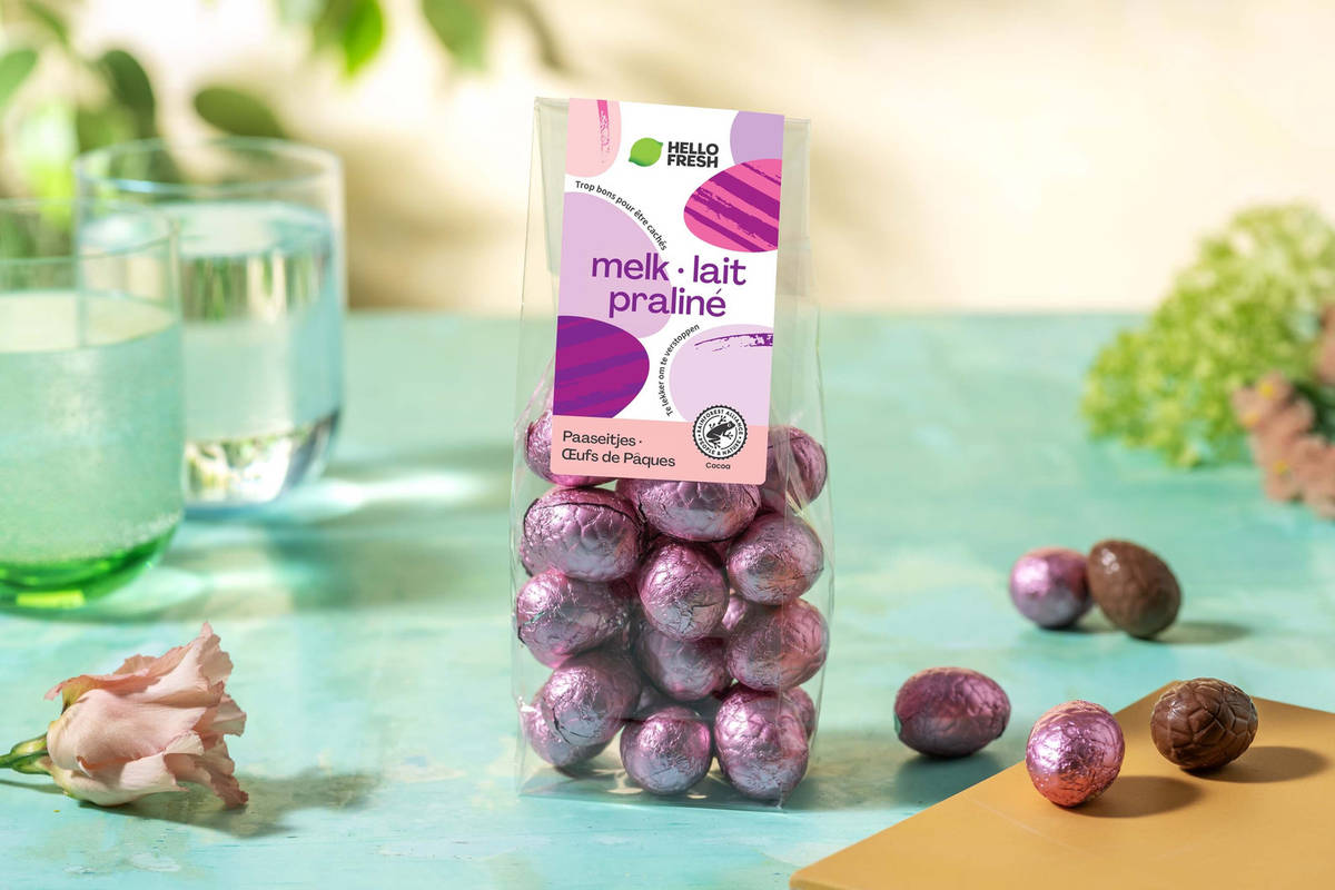 € 13.95 / kg<p><p>INGRÉDIENTS : sucre, 23 % NOISETTES, 12 % LAIT entier en poudre, 11 % beurre de cacao, 6 % masse de cacao, émulsifiant (lécithine de tournesol), arôme. ALLERGÈNES : Lait (y compris lactose), noisettes. Peut contenir des traces de céréales contenant du gluten, œufs, soja, fruits à coque. CONSERVATION : À conserver au frais et au sec. HelloFresh Antwoordnummer 39162 1090 WC Amsterdam Pays-Bas <small>HelloFresh met tout en œuvre pour communiquer les informations les plus exactes possibles sur ses produits mais ne peut cependant garantir l'exactitude, le caractère complet et/ou actuel de ces informations. Nos recettes sont régulièrement revues et améliorées, ce qui signifie que les informations concernant les allergènes (telle que la mention ""peut contenir de""), la valeur nutritionnelle, les ingrédients ou tout autre détails sur nos produits peuvent être amenées à changer et que des différences peuvent apparaître entre les informations indiquées sur le Site Internet et/ou l'Application et celles présentes sur le produit. En cas de doute, toujours se référer aux informations présentent sur l'étiquette. Pour toute question sur nos produits, merci de contacter le service clients. Si vous avez des questions sur des produits qui ne sont pas vendus sous la marque HelloFresh vous pouvez également contacter directement le fabricant des ces produits si vous le souhaitez.</small>