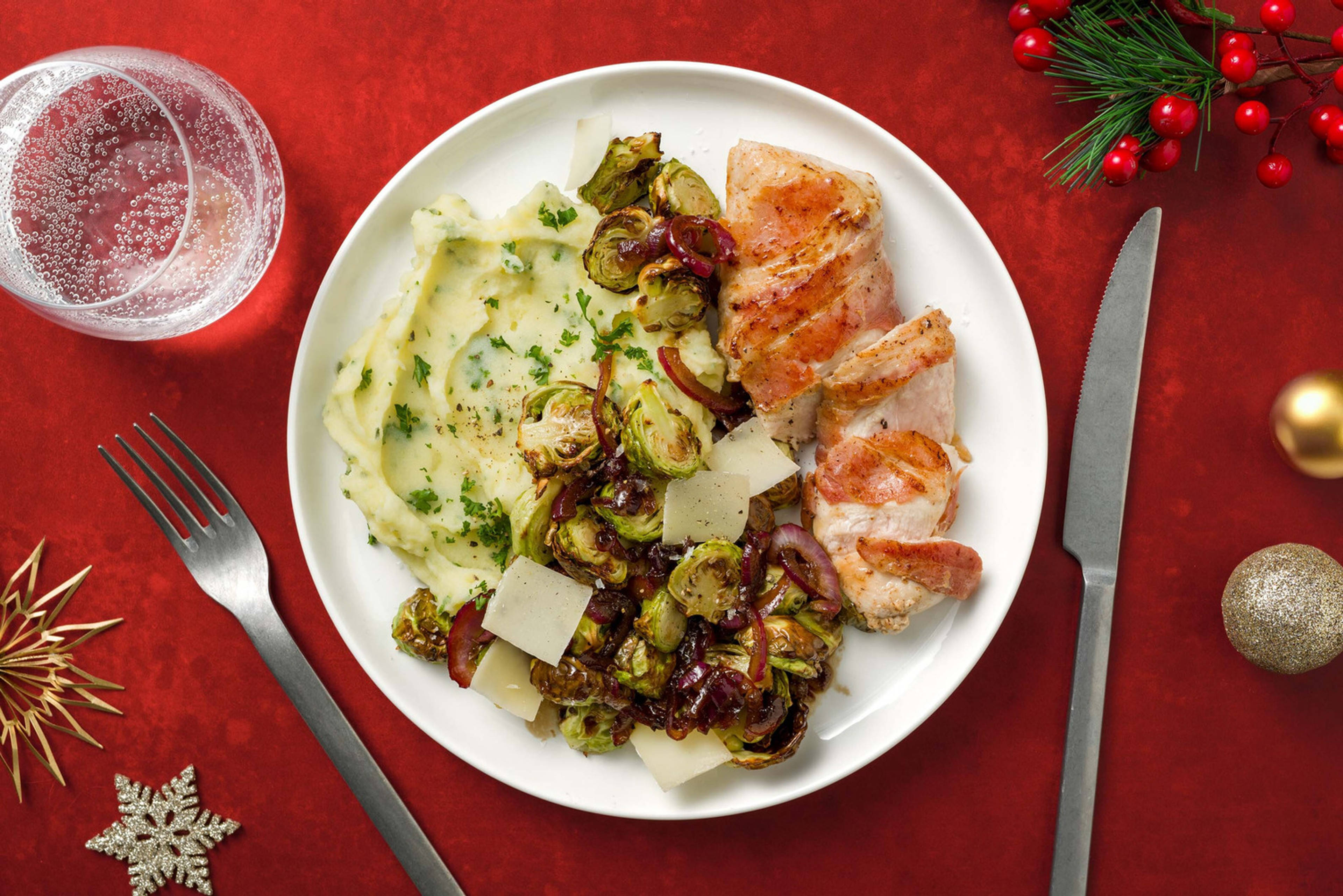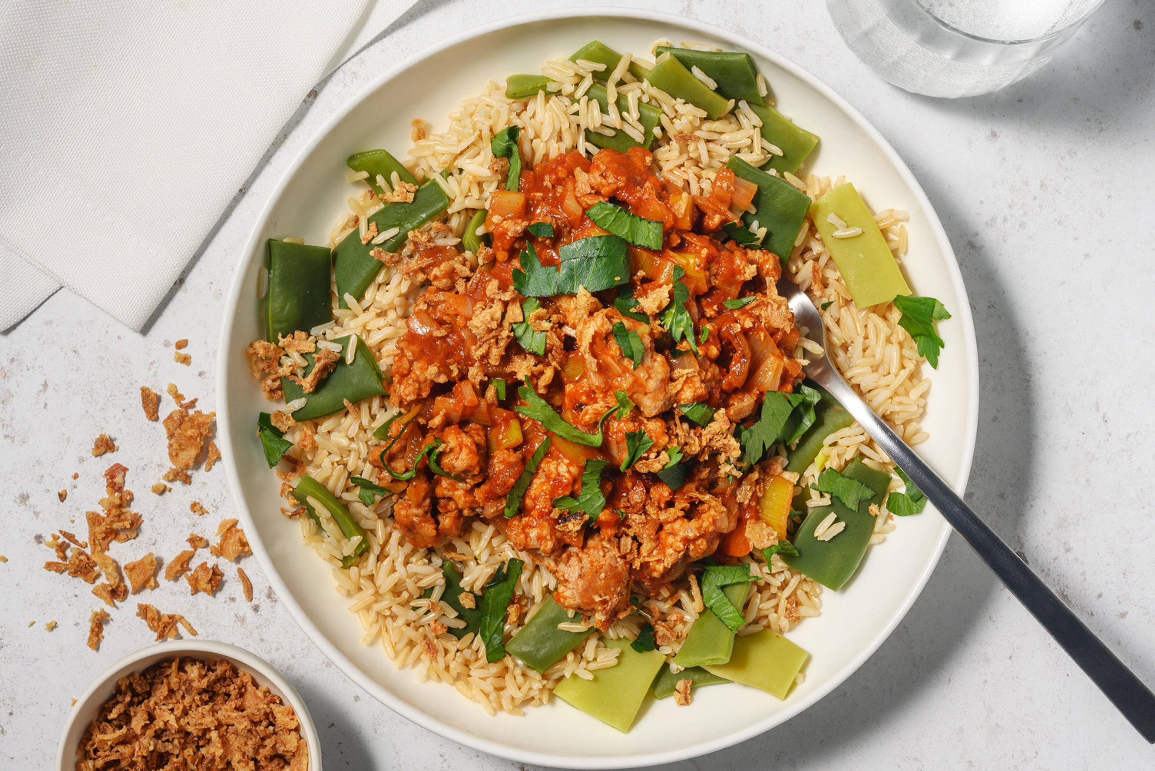 Pendant ce temps, faites chauffer 1/2 cs d'huile d’olive par personne dans le wok ou la sauteuse et faites-y revenir l'ail et l'oignon rouge 1 à 2 minutes à feu doux. Ajoutez-y les crevettes, la moitié des amandes effilées et la moitié des herbes fraîches. Faits cuire 3 à 4 minutes à feu moyen-vif. Ajoutez la moitié de l’huile d’olive au citron, puis assaisonnez de sel et de poivre.