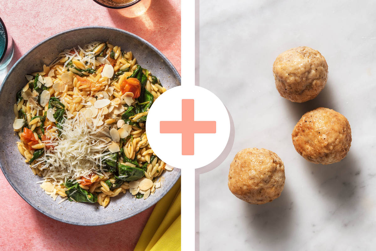 Ce plat vous emmène tout droit en Italie. L’orzo ressemble au riz mais il appartient tout de même à la famille des pâtes. Les boulettes de viande hachée au poulet ont été assaisonnées aux herbes italiennes. Et comme il ne s’aurait y avoir de pâtes sans fromage, aujourd’hui, vous accompagnerez ce plat de Grana Padano, un cousin germain du Parmesan. La durée d’affinage du Grana Padano est plus courte, ce qui le rend plus doux.