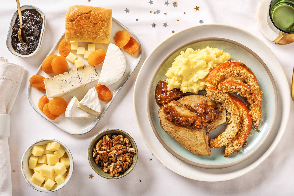 Pendant les fêtes, épatez vos convives avec nos formules entrée-plat ou plat-dessert, pour faire de chaque dîner un moment exceptionnel ! Au menu, un paleron de veau, sauce au vin rouge et tranches de potiron rôti, suivi <a href="https://cdn.hellofresh.com/be/cms/51.19.2.FR_Plateau_de_fromages.pdf" target="d'un plateau de fromage bien gourmand">d'un plateau de fromage bien gourmand</a>. On se croirait au restaurant...