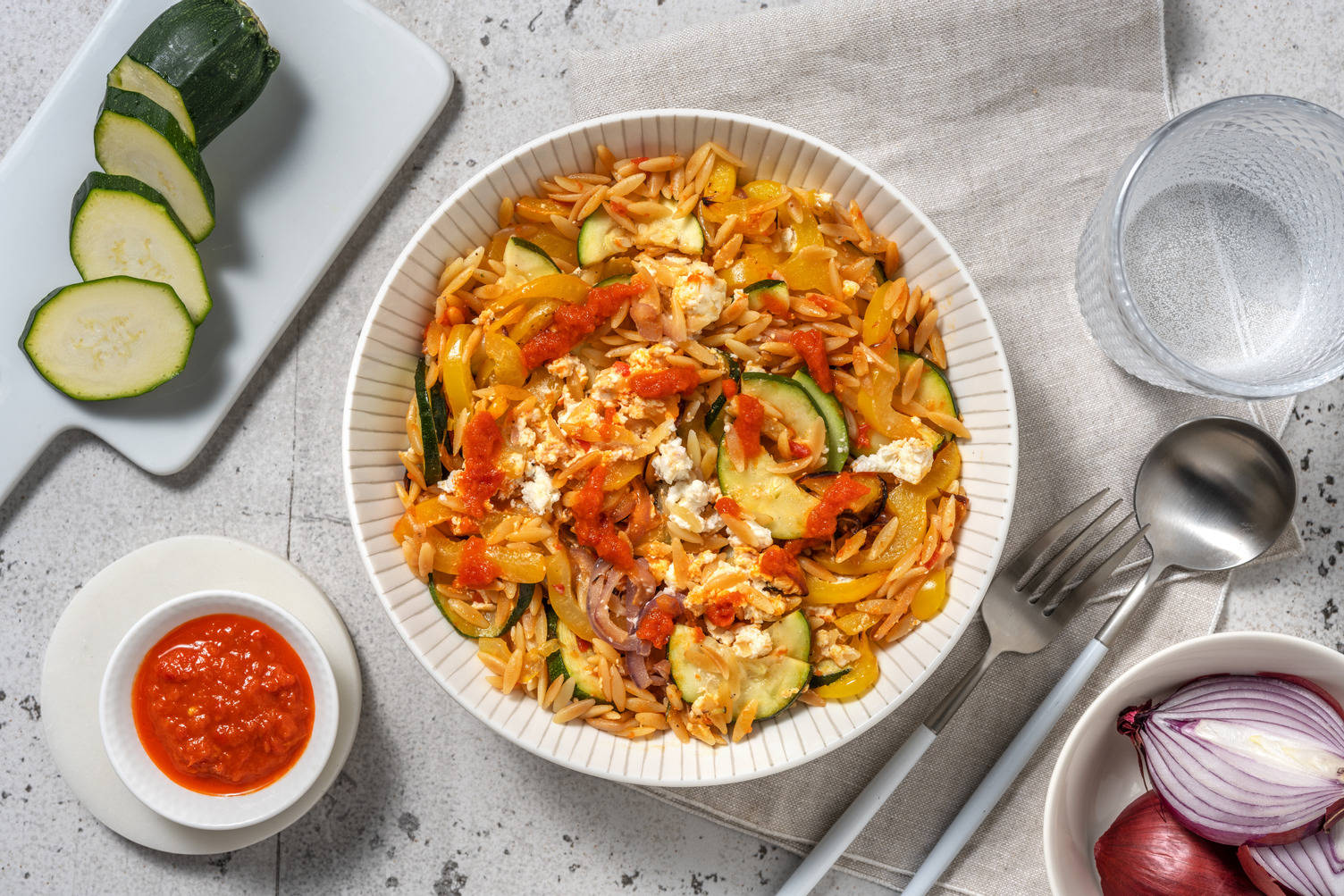 - Râpez la courgette et coupez les tomates en deux.