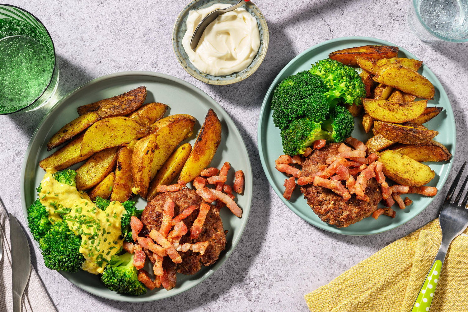 Pendant la cuisson, émincez la ciboulette au couteau ou à l’aide de ciseaux. Utilisez le yaourt turc, la moutarde et la majeure partie de la ciboulette pour préparer la sauce au yaourt, puis assaisonnez à souhait avec le poivre et le sel.