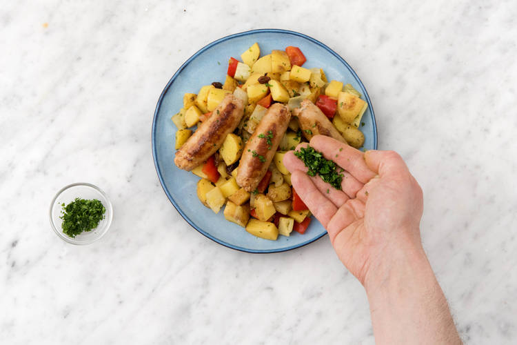 Dressez le plat sur les assiettes et garnissez avec du persil plat. Versez un filet d’huile d’olive extra-vierge selon votre goût.