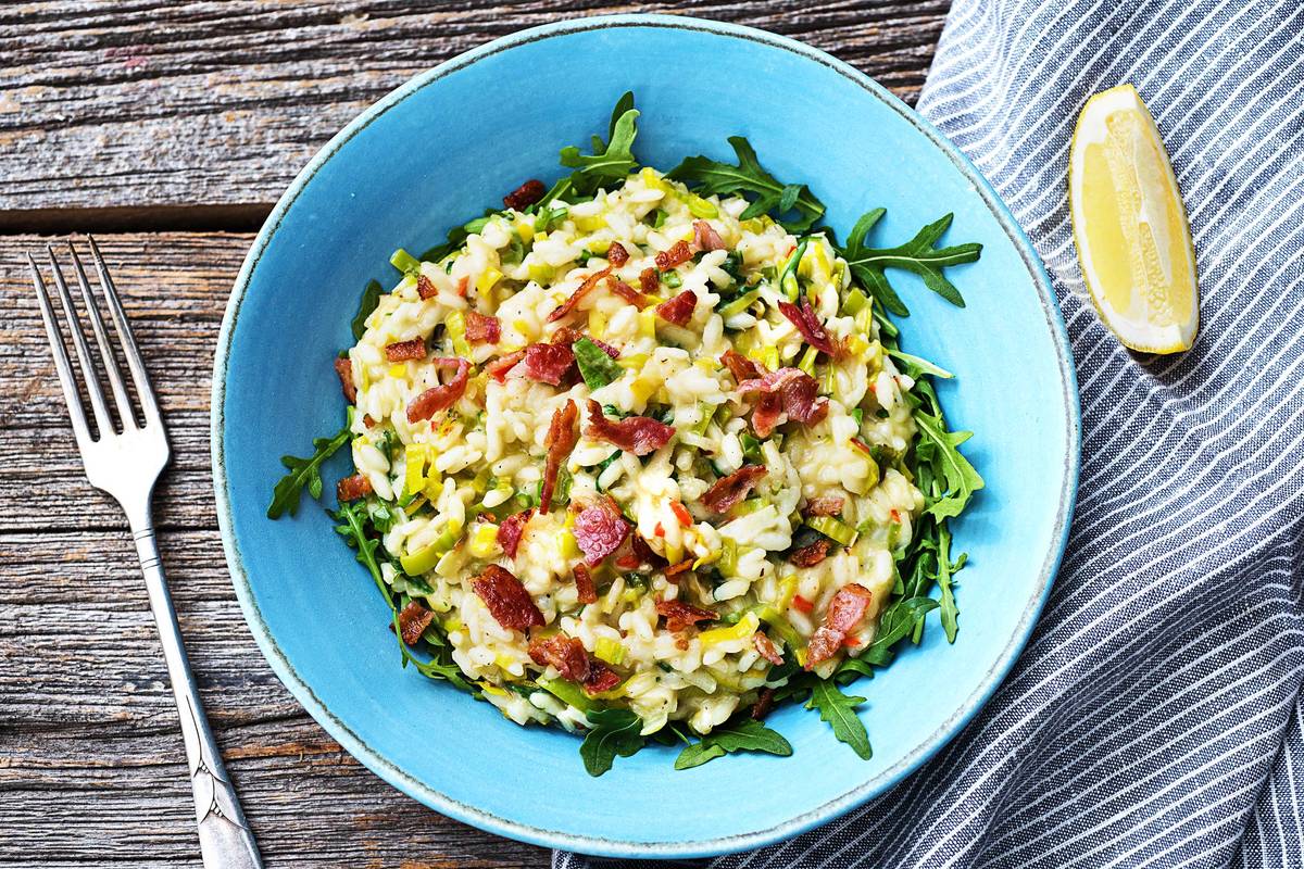 Après une journée chargée, la préparation d’un risotto est une activité des plus apaisantes ! Grâce au piquant du piment rouge et à la fraîcheur du citron, celui-ci est une véritable explosion de saveurs. En plus du bouillon, le pecorino et le lard grillé apportent suffisamment de sel au plat : inutile d’en ajouter.
