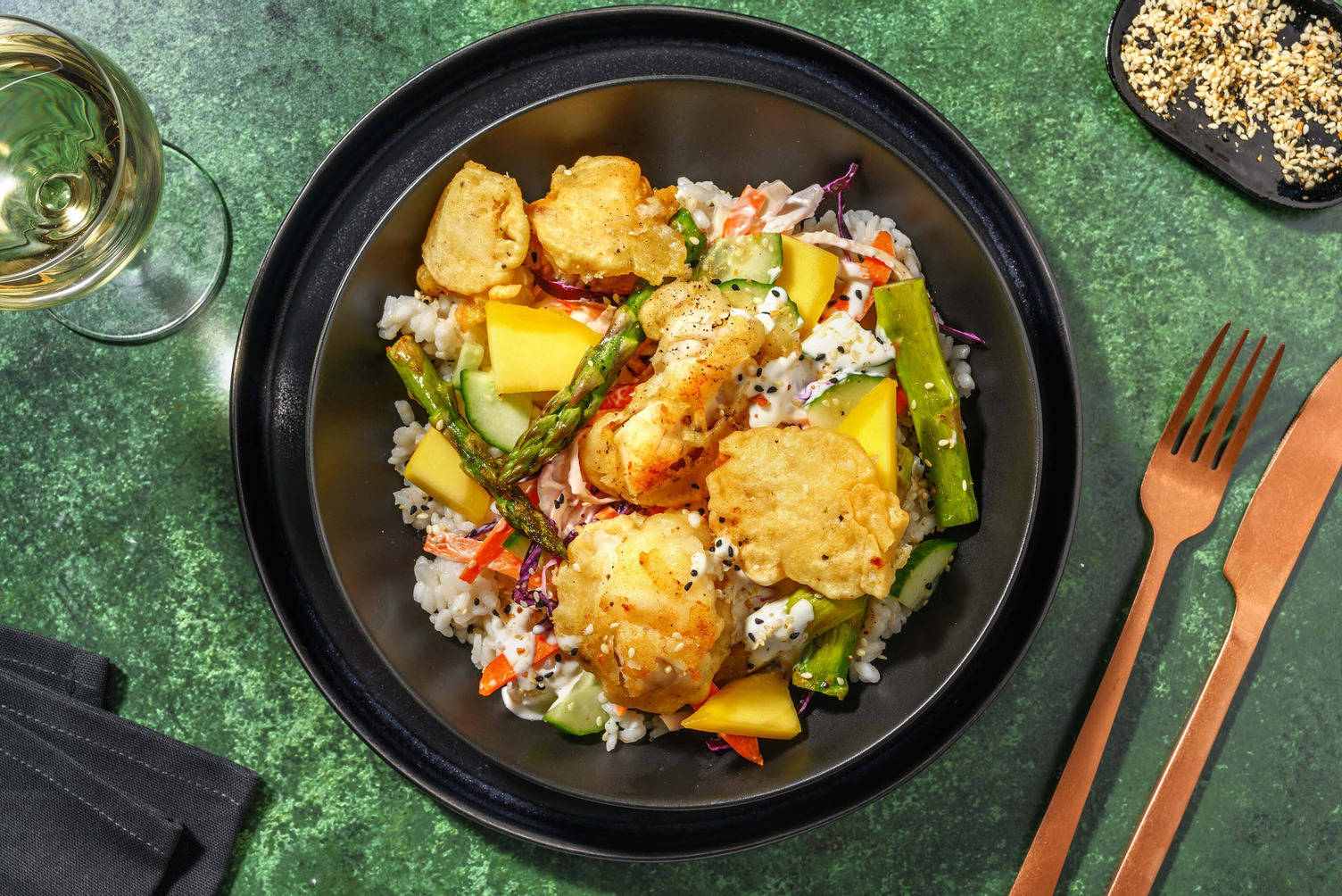 Servez le smoothie à la mangue dans de grands verres et garnissez avec les graines de chanvre restantes.