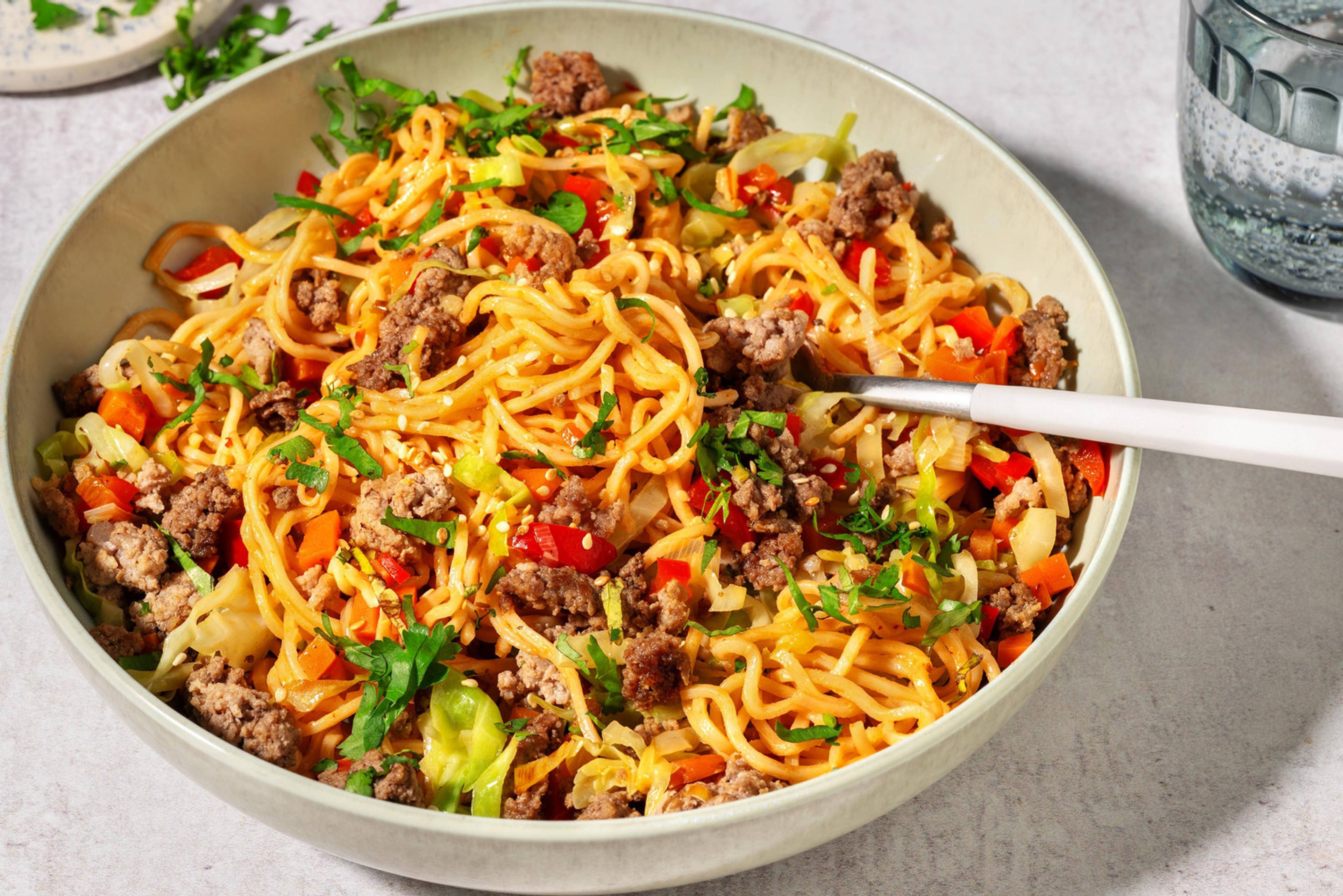Ajoutez le lait de coco et le bouillon à la marmite à soupe. Laissez mijoter la soupe 5 à 7 minutes à feu moyen. Pendant ce temps, ciselez finement la coriandre et concassez grossièrement les cacahuètes. Ajoutez les nouilles udon à la soupe lors des 3 dernières minutes.
