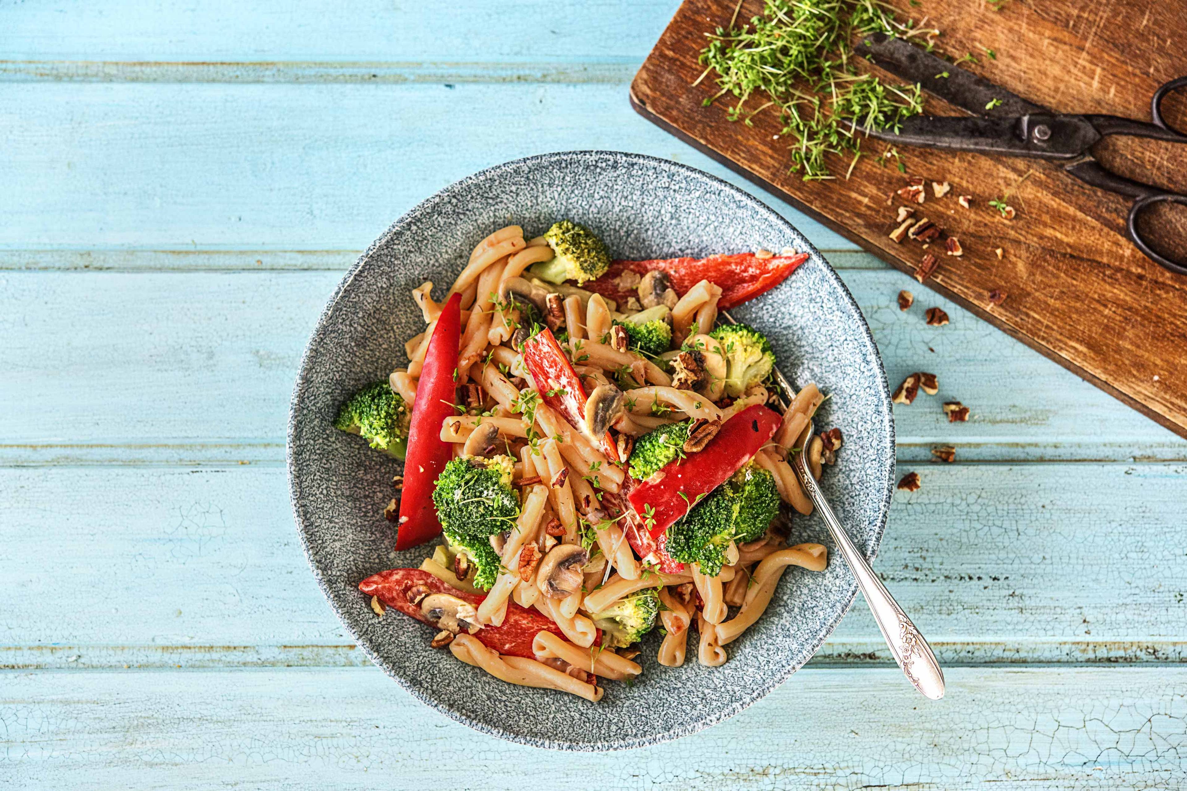 Pendant ce temps, faites cuire les pâtes fraîches 4 à 6 minutes. Égouttez-les en réservant un peu d'eau de cuisson et ajoutez-les à la sauteuse contenant la sauce. Mélangez bien et ajoutez éventuellement un peu d'eau de cuisson des pâtes si la sauce est encore trop épaisse.